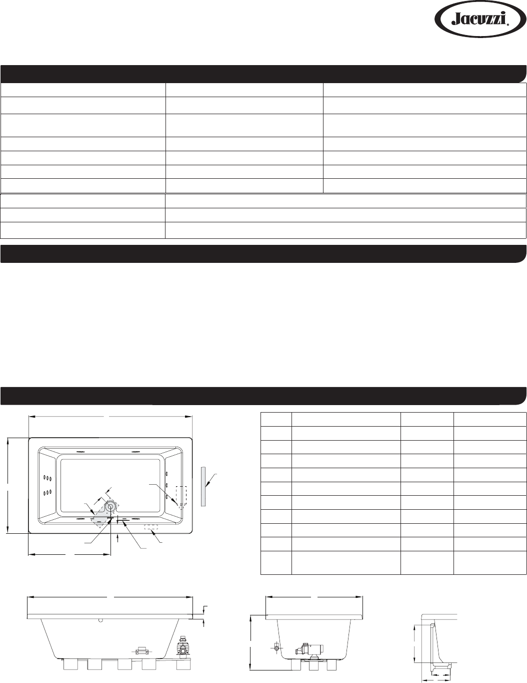 © 2010 Jacuzzi Luxury Bath • For additional information call Customer Service 800-288-4002 • www.jacuzzi.com/technicalspecs