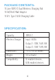 PACKAGE CONTENTS: 1X Jarv 10W X 2 Dual Wireless Charging Pad 1X 5V/3A AC Wall Adaptor 1X 5ft. Type C USB Charging Cable SPECIFICATION: Capacity: Wireless Charger: Dimensions: Weight: Compatibility: 10W X 2 Input: 5V/3A Output 1: 10W, 7.5W, 5W Output 2: 10W, 7.5W, 5W 7 x 3.2 x 0.02 inches 3.3 oz (bulk) Qi enabled devices, USB enabled devices.