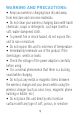 WARNING AND PRECAUTIONS: • Keep your wireless charging base dry and away from moisture and corrosive materials. • Do not clean your wireless charging base with harsh chemicals, soaps or detergents. Just wipe it with a soft, water-dampened cloth. • To prevent fire or shock hazard, do not expose this unit to rain or moisture. • Do not expose this unit to extremes of temperature. • Immediately terminate use of the product if the item bulges, smells or leaks.