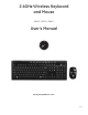 Thank you for purchasing the GE 2.4GHz Wireless Multimedia Keyboard and Mouse. This User’s Manual contains all of the information needed to operate your keyboard and Mouse 1. Introduction Do away with cables and take control of your applications. The 2.4 GHz Wireless Multimedia Keyboard and Mouse are specially designed to optimize your efficiency and provide a complete wireless solution.