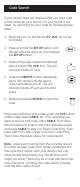 Code Search If your device does not respond after you have tried all the codes for your brand, or if your brand is not listed, try searching for your code by following these steps. 1. Manually turn on the device (TV, VCR, etc.) to be controlled. 2. Press and hold the SETUP button until the red indicator stays on, then release the SETUP button. 3. Press and quickly release the desired device button (TV, VCR, etc.). The red indicator blinks off once. 4.