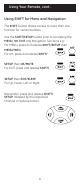 Using Your Remote, cont. Using SHIFT for Menu and Navigation The SHIFT button allows access to more than one function for certain buttons. Use the SHIFT/SETUP button prior to accessing the MENU, OK, EXIT and Navigation functions e.g.: For MENU, press and release SHIFT/SETUP then MENU/INFO. For OK, press and release SHIFT/ SETUP then OK/MUTE. For EXIT, press and release SHIFT/ SETUP then EXIT/SLEEP.