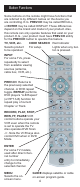 Button Functions Some buttons on the remote might have functions that are referred to by different names on the device you are controlling. E.G. PREV.CH may be called RECALL, or ENTER may be called DISPLAY. These differences depend on the brand and model of your product. Also, this remote can only operate features that exist on your product. E.G., your product must have PREV.CH ability for the PREV.CH button to operate this feature. TV, VCR, etc. CODE SEARCH Red Indicator Selects product For setup.
