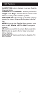 SAT Functions GUIDE/PROG button displays on-screen Satellite Channel Guide. CHANNEL+ and CHANNEL- buttons perform the “Page+” and “Page-” function for on-screen Guide Menus used by some Satellite systems. INFO/DISPLAY button brings up Satellite Display screen for current Channel and system information. MENU brings up the Satellite Menu screen - use with the UP, DOWN, LEFT & RIGHT navigation buttons. OK button is used for on-screen Menu selection. EXIT button is used to Exit or Clear on-screen Menu displays.