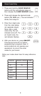 Direct Code Entry 1. Press and hold the CODE SEARCH button until the red indicator stays on, then release the CODE SEARCH button. 2. Press and release the desired mode button (TV, VCR, etc.). The red indicator blinks, then stays lit. 3. Enter the 4 digit code from the code tables (on separate sheet). Note: after a valid code entry, the red indicator turns off. For an invalid code, the red indicator flashes. 4. With your device on, press ON•OFF. If the device turns off, no further programming is required.