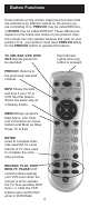 Button Functions Some buttons on the remote might have functions that are referred to by different names on the device you are controlling. E.G. PREV.CH may be called RECALL, or ENTER may be called DISPLAY. These differences depend on the brand and model of your product. Also, this remote can only operate features that exist on your product. E.G., your product must have PREV.CH ability for the PREV.CH button to operate this feature. TV, CBL/SAT, VCR, DVD/ AUX Selects product to be operated.