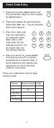 Direct Code Entry 1. Press and hold the SETUP button until the red indicator stays on, then release the SETUP button. SETUP 2. Press and release the desired device button (TV, VCR, etc.). The red indicator blinks, then stays lit. TV 3. Enter the 3 digit code from the code tables (on separate sheet). Note: after a valid code entry, the red indicator turns off. For an invalid code, the red indicator flashes. 1 2 3 4 5 6 7 8 9 4. With your device on, press ON/OFF.