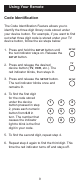 Using Your Remote Code Identification The Code Identification Feature allows you to identify the three digit library code stored under your device button. For example, if you want to find out what three digit code is stored under your TV device button, follow the six steps below: 1. Press and hold the SETUP button until the red indicator stays on. Release the SETUP button. TV 2. Press and release the desired device button (TV, VCR, etc.). The red indicator blinks, then stays lit. 3.