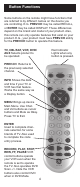 Button Functions Some buttons on the remote might have functions that are referred to by different names on the device you are controlling. E.G. PREV.CH may be called RECALL, or ENTER may be called DISPLAY. These differences depend on the brand and model of your product. Also, this remote can only operate features that exist on your product. E.G., your product must have PREV.CH ability for the PREV.CH button to operate this feature. TV, CBL/SAT, VCR, DVD/ AUX Selects product to be operated.