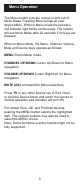 Menu Operation The Menu button puts the remote in and out of Menu Mode. Pressing Menu brings up your device Menu. While in Menu mode the remote’s red indicator light blinks continuously. The remote will exit Menu Mode after 20 seconds if no keys are pressed. When in Menu Mode, the Menu, Channel, Volume, Mute and Device keys operate as follows: MENU Enters Menu mode. CHANNEL UP/DOWN Cursor Up/Down for Menu navigation. VOLUME UP/DOWN Cursor Right/Left for Menu navigation.