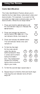 Using Your Remote Code Identification The Code Identification Feature allows you to identify the four digit library code stored under your device button. For example, if you want to find out what four digit code is stored under your TV device button, follow the six steps below: 1. Press and hold the SETUP button until the red indicator stays on. Release the SETUP button. TV 2. Press and release the desired device button (TV, VCR, etc.). The red indicator blinks, then stays lit. 3.