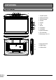 TECHNISCHE DATEN Element Display Subelement Parameter Bildschirm 25.65 cm (10.1“) TFT LCD (16:9) Auflösung 1024 x 600 Eingangsfrequenz DVB-T Tuner Audio UHF: 470 ~ 860 MHz HF-Eingangspegel -25 ~ 82 dBm IF-Bandbreite 7 MHz / 8 MHz Modulation QPSK, 16QAM, 64QAM Untertitel Ja Teletext Ja Unterstützte Länder Deutschland, Frankreich, Spanien, Italien, Dänemark, Schweden Decoder-Format Video VHF: 170 ~ 230 MHz MPEG4 AVC/H.264 HP@L4 MPEG2 MP@ML.