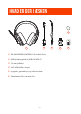 Produktoversigt Kontrolelementer på hovedtelefonerne 01 02 03 16 04 05 06 15 07 14 08 13 09 12 10 11 01 ANC* / TalkThru** LED • Lyser op når ANC-funktionen (aktiv støjreduktion) er aktiveret • Blinker hurtigt, når TalkThru-funktionen er aktiveret. 02 knap • Tryk kortvarigt for at slå ANC til eller fra. • Hold nede i mere end 2 sekunder for at slå TalkThru til eller fra. 03 / • Drejeknap Afbalancerer lydstyrken for chat i forhold til spillets lydstyrke.