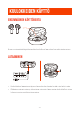 Kuulokkeiden käyttö Ensimmäinen käyttökerta Ennen ensimmäistä käyttökertaa laita kuulokkeet latauskoteloon aktivointia varten. Lataaminen 15 3 • Kuulokkeiden lataaminen täyteen latauskotelon kautta kestää noin kaksi tuntia. • Pikalatausominaisuutena, viidentoista minuutin lataus antaa kuulokkeillesi virtaa kolmen tunnin musiikintoistoa varten.