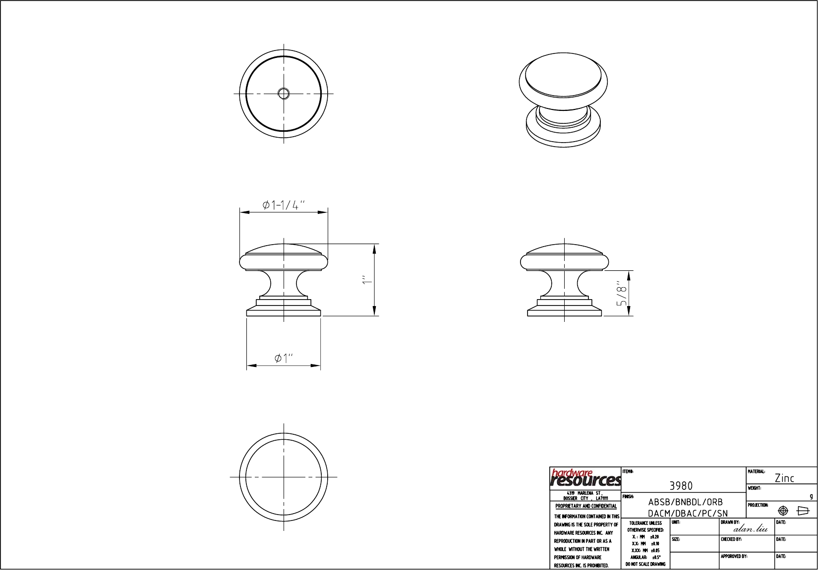 Durham 1-1/4 Inch Mushroom Cabinet Knob