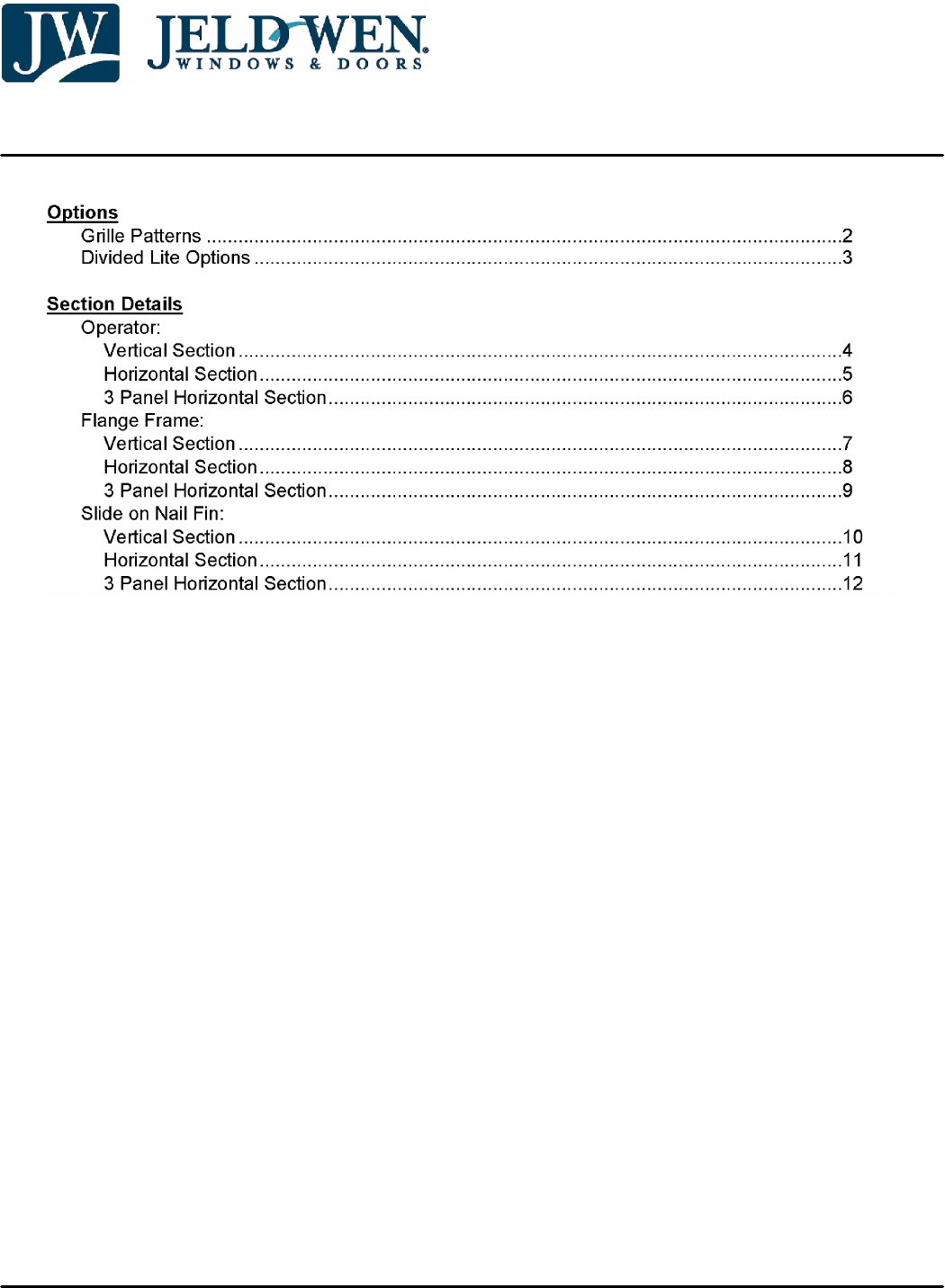 BUILDERS ALUMINUM ALUMINUM WINDOWS SLIDER TABLE OF CONTENTS Architectural Design Manual February 2017 Product specifications may change without notice. Questions? Consult JELD-WEN customer service.