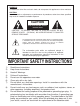 WARNING: To reduce the risk of fire or electric shock, do not expose this appliance to rain or moisture. CAUTION: Use of controls or adjustments or performance of procedures other than those specified may result in hazardous radiation exposure. CAUTION RISK OF ELECTRIC SHOCK DO NOT OPEN CAUTION - TO REDUCE THE RISK OF ELECTRIC SHOCK, DO NOT REMOVE COVER (OR BACK). NO USER-SERVICING TO QUALIFIED SERVICE PERSONNEL.