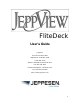 FliteDeck User's Guide Jeppesen 55 Inverness Drive East Englewood, CO 80112-5498 1-800-621-5377 Western Hemisphere 303-328-4274 Fax 303-328-4153 Eastern Hemisphere +49 6102 5070 Fax +49 6102 507999 http://www.jeppesen.
