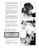Changing Blades 1. Disconnect machine from the power source. 3. Loosen nut (B, Fig. 14) and turn nut (C, Fig. 14) to adjust eccentric bearing to a clearance of .001". Tighten nut (B, Fig. 14) to lock. 2. Raise the saw arm to the vertical position and lock in place with lock lever. 4. Connect machine to power source. 3. Open blade cover by removing the small knob found on the topside of the bow. 4. Remove red blade guards by removing two screws.
