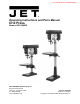This .pdf document is bookmarked Operating Instructions and Parts Manual Drill Press Models JDP-15M/MF WALTER MEIER (Manufacturing) Inc. 427 New Sanford Road LaVergne, Tennessee 37086 Ph.: 800-274-6848 www.waltermeier.com Part No. M-354165 Revision A1 04/2010 Copyright © 2010 Walter Meier (Manufacturing) Inc.