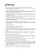 Table of Contents Table of Contents ...............................................................................................................................3 Warnings............................................................................................................................................4 Specifications .....................................................................................................................................6 Shipping Contents .............................