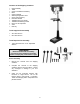 Contents of the Shipping Container 1. 1. 1. 1. 1. 1. 1. 3. 1. 1. 4. 1. 1. Head Assembly Table Column and Bracket Assembly Base Owner’s Manual Warranty Registration Card Chuck and Chuck Key Downfeed Handle Table Bracket Lock Handle Table Bracket Raising Handle M10 x 40 Hex Cap Bolts Arbor Drift Key Tools Supplied for Assembly 1. 3mm Hex Wrench 1. 5mm Hex Wrench Tools Required for Assembly 1.