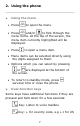 2. Using the phone Using the menu Press to open the menu Press and/or to flick through the menu items. At the top of the screen, the menu item currently highlighted will be displayed. Press to open a menu item. Menu items can be selected directly using the digits assigned to them. Options which you can select by pressing or are displayed at the bottom of the screen. To return to standby mode, press serveral tims or close the phone.