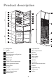 Product description 1 2 14 3 4 15 22 16 5 17 6 18 7 20 8 19 9 21 10 11 12 23 24 13 25 A - Refrigerator B - Freezer 1 Control panel 2 Air distribution and light box 3 Glass shelves 4 Bottle rack 5 Glass shelf 6 Chiller Zone compartment 7 Salad/vegetable drawer 8 Rating plate 9 Air grid 10 Storing compartment(s) 11 Quick freeze drawer 12 Bottom plinth 13 14 15 16 17 18 19 20 21 22 23 24 25 6 Adjustable feet Dairy compartment Egg tray Door shelf Door gasket Bottle shelf Handles Condenser De