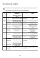 Cooking table This table is intended as a guide only. It may be necessary to increase or decrease the temperature to suit your individual requirements. Only experience will enable you to determine the correct setting for your personal requirements.