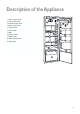 Description of the Appliance 5 1 Dairy compartments 2 Can storage shelves 3 Movable storage shelf 4 Bottle storage shelf 5 Control panel 6 Interior light 7 DAC 8 Storage shelves 9 Bottle holder 10 Water discharge hole 11 Salad crisper Mode On / Off 1 2 5 4 3 6 1 7 2 9 3 8 10 4 11 5