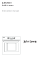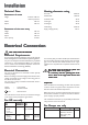 Installation Technical Data Heating elements rating Dimensions of recess Fan Oven 2,000 W Grill element 1,650 W Height in-column: 580 mm undertop: 593 mm 560 mm 550 mm Width Depth Dimensions of the o vity ovven ca cavity Convection Fan 25 W Oven Light 25 W Cooling Fan 25 W Total Rating 2,075 W Supply voltage (50 Hz) Height Width Depth 335 mm 395 mm 400 mm Oven capacity 53 litres 230 V Electrical Connection THIS O VEN MUST BE EAR THED OVEN EARTHED Electrical Requirements Any permane