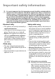 Important safety information 1 It is most important that this instruction manual should be retained with the appliance for future reference. Should the appliance be sold or transferred to another owner, or should you move house and leave the appliance, always ensure that the book is supplied with the appliance in order that the new owner can get to know the functioning of the appliance and the relevant warnings. These warnings have been provided in the interest of safety.
