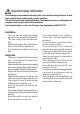 Important Safety Information These warnings are provided for the safety of the users and those living with them. So read them carefully before installing and using the appliance. This will allow you to obtain best performance, avoid improper actions, use the appliance in complete safety and also respect the environment. If you need assistance, contact our Customer Care Department on 08705 727 727. Installation · · · · This oven must be installed by qualified personnel to the relevant British Standards.