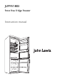 Unpacking The appliance must always be transported in the vertical position as indicated on the outside of the packaging. After each transportation the appliance must not be switched on for approx. 2 hours. To ensure the coolant gases settle. Unpack the Fridge Freezer and check for any possible damage. If the appliance is damaged please report this to the John Lewis branch from which you purchased; in this case please retain the packaging. Report possible damages immediately to the place you bought it.