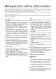 Important safety information It is most important that this instruction book should be retained with the appliance for future reference. Should the appliance be sold or transferred to another owner, or should you move house and leave the appliance, always ensure thatthe book is supplied with the appliance in order that the new owner can get to know the functioning of the appliance andthe relevant warnings. These warnings have been provided in the interest of safety.
