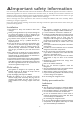 Important safety information It is most important that this instruction book should be retained with the appliance for future reference. Should the appliance be sold or transferred to another owner, or should you move house and leave the appliance, always ensure thatthe book is supplied with the appliance in order that the new owner can get to know the functioning of the appliance andthe relevant warnings. These warnings have been provided in the interest of safety.