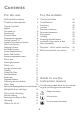 Contents For the user For the installer Safety information 2 Technical data 20 Product description 6 Installation Positioning Location Electrical Connection Permanent connection Rear spacers Levelling Removing the shelf holders Installation of the carbon air filter Door reversibility 20 20 20 21 22 22 22 22 23 23 Repairs - after sales service 26 Environmental concerns 27 Control panel Display First switch on Switching off Functions Menu Temperature regulation Holiday Function "H" Ambient Tempe