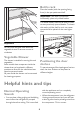 Problem Possible cause Solution Water flows into the refrigerator. The water outlet is clogged. Clean the water outlet. Food prevent that water flows into the water collector. Make sure that food do not touch the rear plate. Water flows on the ground. The melting water outlet does not Attach the melting water outlet to flow in the evaporative tray above the evaporative tray. the compressor. There is too much frost and ice. Food are not wrapped properly. Wrap the food better.