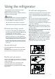 Using the refrigerator The temperature of this compartment may be regulated between +2°C and +8°C. During normal functioning the indicator shows the temperature inside the fridge. Attention! A difference between the temperature displayed and the actual temperature is normal. Especially when: • A new setting has recently been selected • The door has been left open for a long time • Warm food has been placed in the compartment.