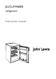 Contents For the User Important safety information Intallation Description of the appliance For the Installer 2 2 5 Installation 6 Technical Specifications 6 Unpacking 7 Transportation, unpacking 7 Cleaning 7 11 Location 7 Storage time and temperature of foods 11 Ventilation Requirements 7 Storage Shelves 11 Levelling 7 Using the refrigerator Hints for storage Hints & Tips 11 12 Normal Operating Sounds 12 Food Storage 12 Energy Saving Advice 12 In the Event of a Power Fail