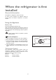 When the refrigerator is first installed General information This appliance is designed for domestic use only. To ensure correct operation, the appliance should be located where the ambient temperature of between 10-32°C. Using the Appliance Before Use Remove all packaging and adhesive tape. Wash the inside of the appliance with lukewarm water and bicarbonate of soda (5 ml to 0,5 litre of water). Do not use soap or detergent as the smell may linger. Dry the appliance thoroughly.