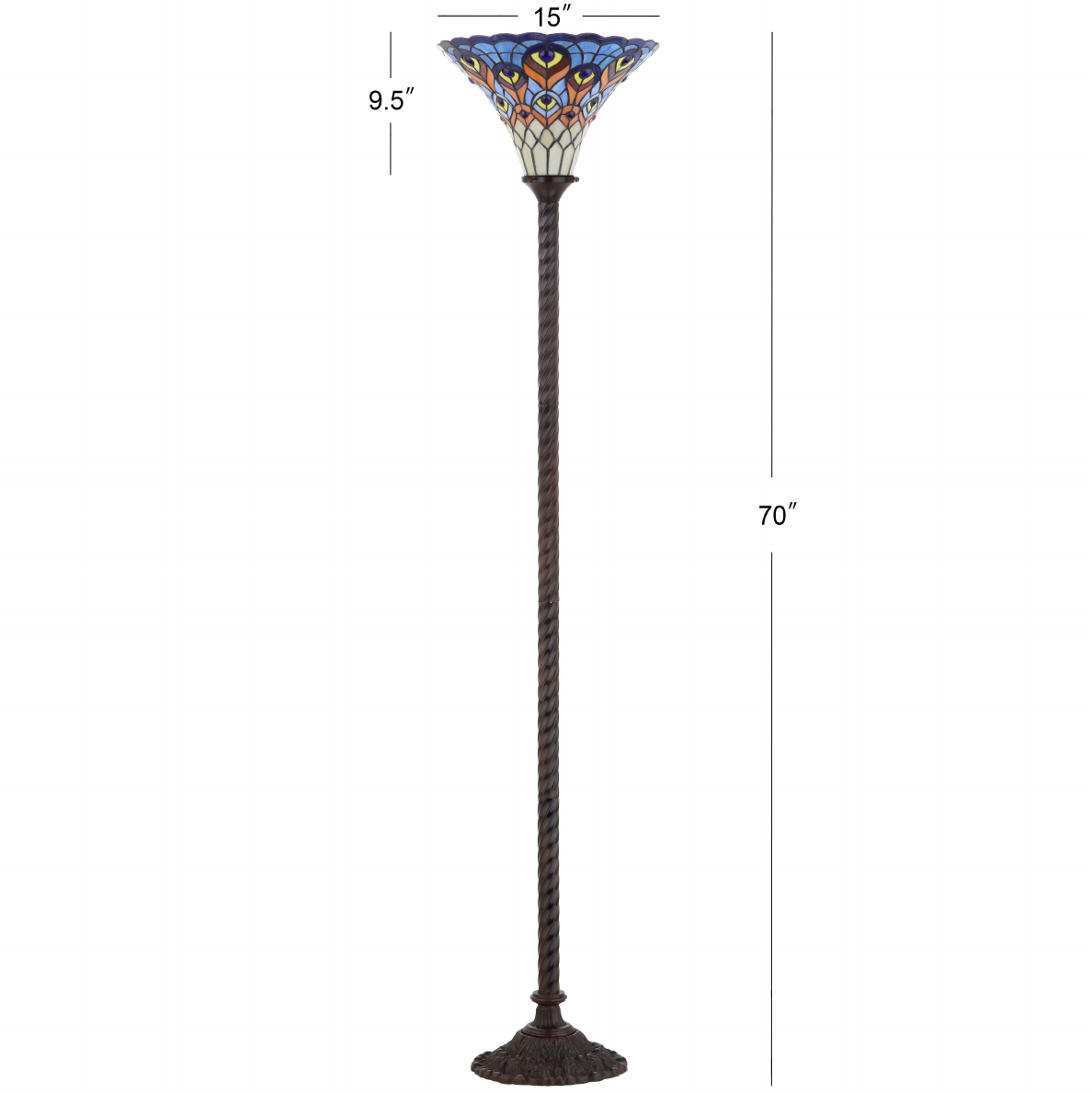 Peacock Tiffany-Style 70 in. Bronze Torchiere Floor Lamp
