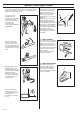SAFETY INSTRUCTIONS 4 Lubricating cutting equipment 1 2 3 Undo the bar nuts that hold the clutch cover and chain brake, using the combination spanner. Then tighten the nuts by hand as tight as you can. Raise the tip of the bar and stretch the chain by tightening the chain tensioning screw using the combination spanner. Tighten the chain until it hangs slack on the underside of the bar. Use the combination spanner to tighten the bar nuts while lifting the tip of the bar at the same time.