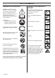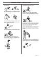 WORKING TECHNIQUES 6 Before moving your chain saw switch off the engine and lock the chain using the chain brake. Carry the chain saw with the bar and chain pointing backwards. Fit a guard to the bar before transporting the chain saw or carrying it for any distance. 7 When you put the chain saw on the ground, lock the saw chain using the chain brake and ensure you have a constant view of the machine. Switch the engine off before leaving your chain saw for any length of time.