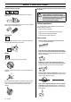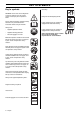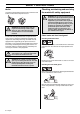 SAFETY INSTRUCTIONS Muffler The muffler is designed to keep noise levels to a minimum and to direct exhaust fumes away from the user. Checking, maintaining and servicing the machine′s safety equipment ! ! WARNING! The exhaust fumes from the engine are hot and may contain sparks which can start a fire. Never start the machine indoors or near combustible material! WARNING! All servicing and repair work on the machine requires special training. This is especially true of the machine′s safety equipment.