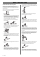 SAFETY INSTRUCTIONS Checking the inertia brake release Throttle lock Hold the chain saw over a stump or other firm object. Let go of the front handle so that the bar drops towards the stump as the chain saw rotates around the rear handle. • Make sure the throttle control is locked at the idle setting when the throttle lock is released. • Press the throttle lock and make sure it returns to its original position when you release it.