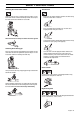 MAINTENANCE Below you will find some general maintenance instructions. Weekly maintenance 3 2 1 Daily maintenance 1 2 3 4 4 7 1 2 5 6 8 0,5 mm 5 6 7 9 Check the throttle trigger for smooth operation. If any binding occurs, or if engine fails to return to idle, the machine should be taken to your dealer, befor it is used again. Also, be sure that the trigger cannot be pulled until the throttle trigger lockout is depressed. Clean the chain brake and check that it operates safely.