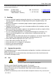 Handling well ventilated areas. The unit is not for use in explosive atmosphere. Only use recommended materials (bath fluids). Only use non-acid and non corroding materials. When using hazardous materials or materials that could become hazardous, the operator must affix the enclosed safety labels (1 + 2) to the front of the unit so they are highly visible: 1 Danger area. Attention! Observe instructions.