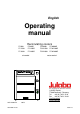 English Operating manual Recirculating coolers FC600 FC1200 FC1600 FC600S FC1200S FC1600S air-cooled FCW600 FCW1200 FCW1600 FCW600S FCW1200S FCW1600S water cooled JULABO GmbH 77960 Seelbach / Germany Tel. +49 (0) 7823 / 51-0 Fax +49 (0) 7823 / 24 91 info@julabo.de www.julabo.de 1.951.4802-V2 19514802-V2.doc 06/13 26.07.
