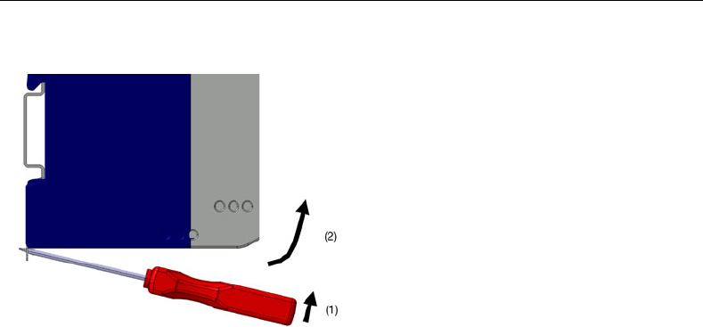 h Swivel screwdriver and case upwards at the same time when removing it from the DIN rail (2).